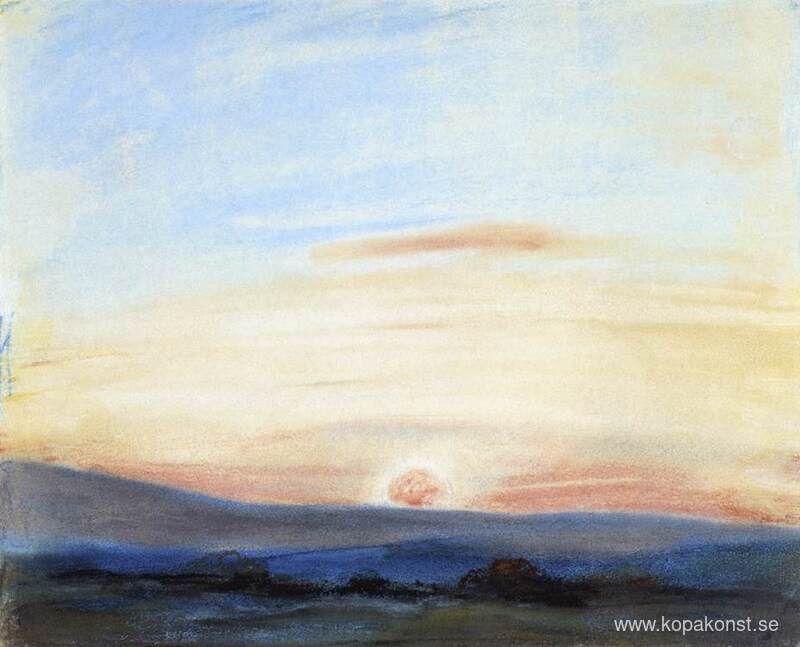 Vi erbjuder dig en hantverksmässig reproduktion på duk av det berömda konstverket 'Studie av himlen, solnedgången' av Eugene Delacroix, från Reproduktionsmuseet.