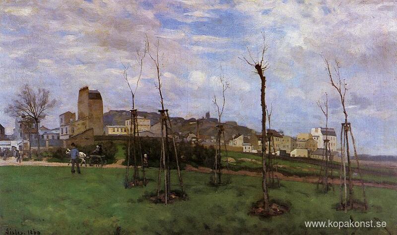 Vi erbjuder dig en hantverksmässig reproduktion på duk av det berömda konstverket 'Utsikt över Montmartre från Cite des Fleurs' av Alfred Sisley, från Reproduktionsmuseet.