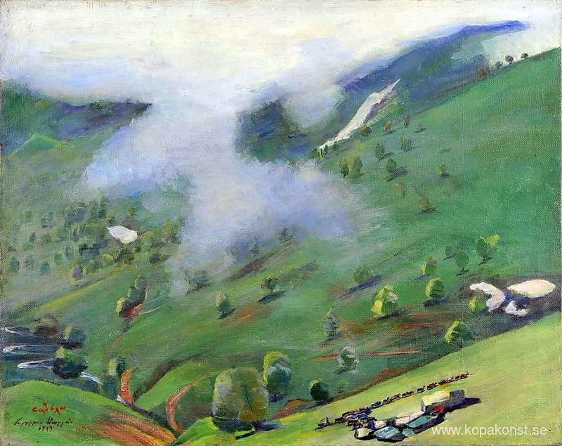 Vi erbjuder dig en hantverksmässig reproduktion på duk av det berömda konstverket 'Utsikt över ravinen från Pushkin-passet' av Martiros Saryan, från Reproduktionsmuseet.