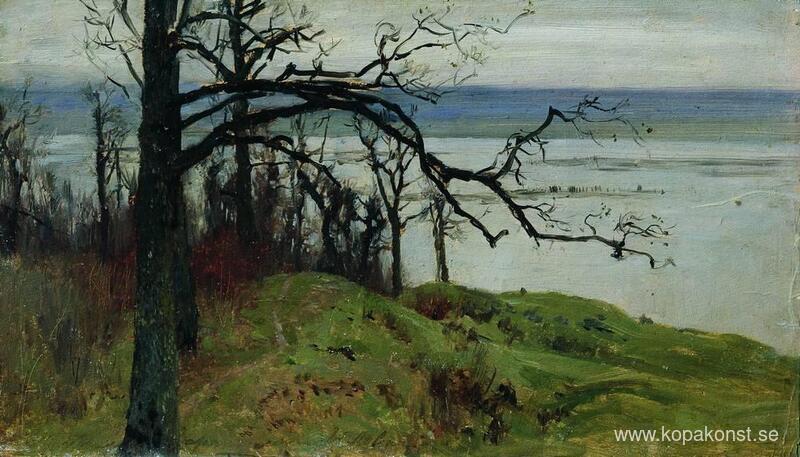 Vi erbjuder dig en hantverksmässig reproduktion på duk av det berömda konstverket 'Utsikt över Volga från den höga stranden' av Isaac Levitan, från Reproduktionsmuseet.