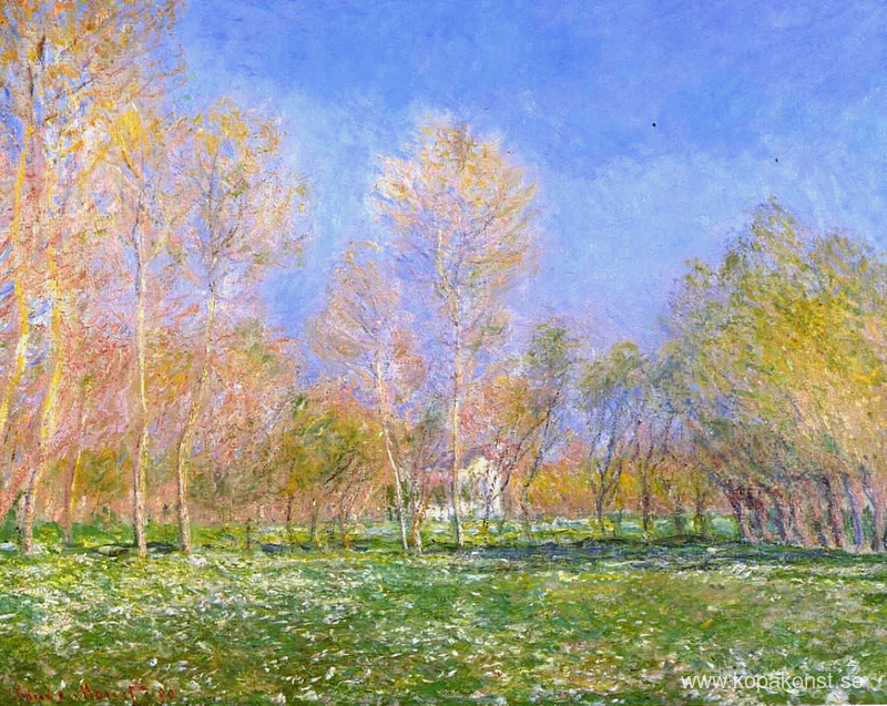 Vi erbjuder dig en hantverksmässig reproduktion på duk av det berömda konstverket 'Vår i Giverny' av Claude Monet, från Reproduktionsmuseet.