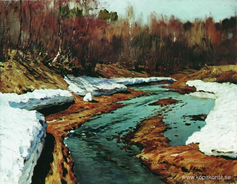 Vi erbjuder dig en hantverksmässig reproduktion på duk av det berömda konstverket 'Våren. Den sista snön.' av Isaac Levitan, från Reproduktionsmuseet.
