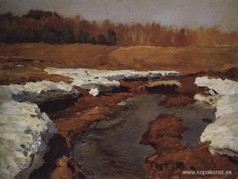 Vi erbjuder dig en hantverksmässig reproduktion på duk av det berömda konstverket 'Våren. Den sista snön.' av Isaac Levitan, från Reproduktionsmuseet.