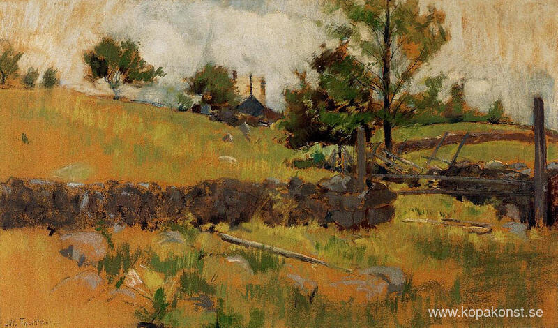Vi erbjuder dig en hantverksmässig reproduktion på duk av det berömda konstverket 'Vårlandskap' av John Henry Twachtman, från Reproduktionsmuseet.
