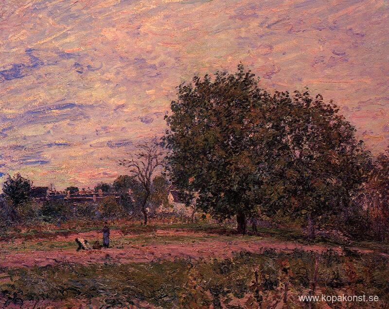 Vi erbjuder dig en hantverksmässig reproduktion på duk av det berömda konstverket 'Valnötsträd, solnedgångens tidiga dagar i oktober' av Alfred Sisley, från Reproduktionsmuseet.