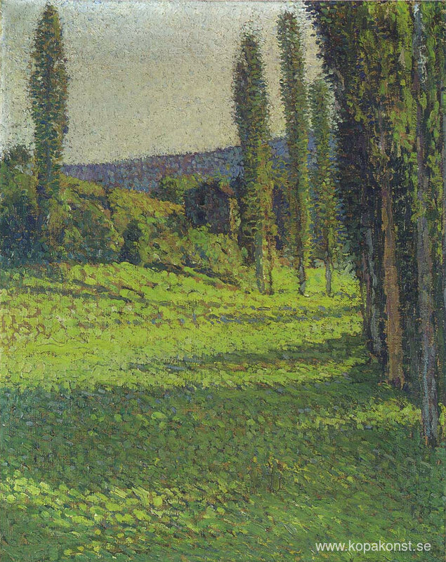Vi erbjuder dig en hantverksmässig reproduktion på duk av det berömda konstverket 'Vid fälten' av Henri Martin, från Reproduktionsmuseet.