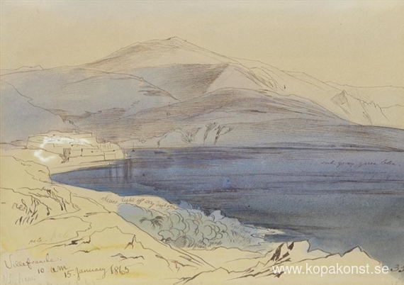Vi erbjuder dig en hantverksmässig reproduktion på duk av det berömda konstverket 'Villefranche' av Edward Lear, från Reproduktionsmuseet.