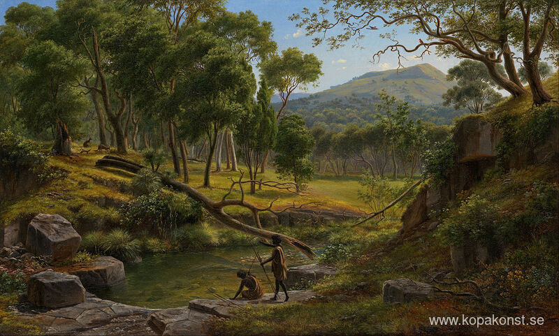 Vi erbjuder dig en hantverksmässig reproduktion på duk av det berömda konstverket 'Warrenheip Hills nära Ballarat' av Eugene von Guerard, från Reproduktionsmuseet.