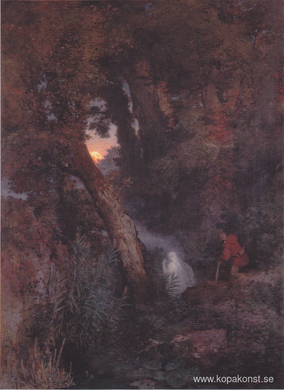 Vi erbjuder dig en hantverksmässig reproduktion på duk av det berömda konstverket 'Will-o'-the-wisp' av Arnold Böcklin, från Reproduktionsmuseet.