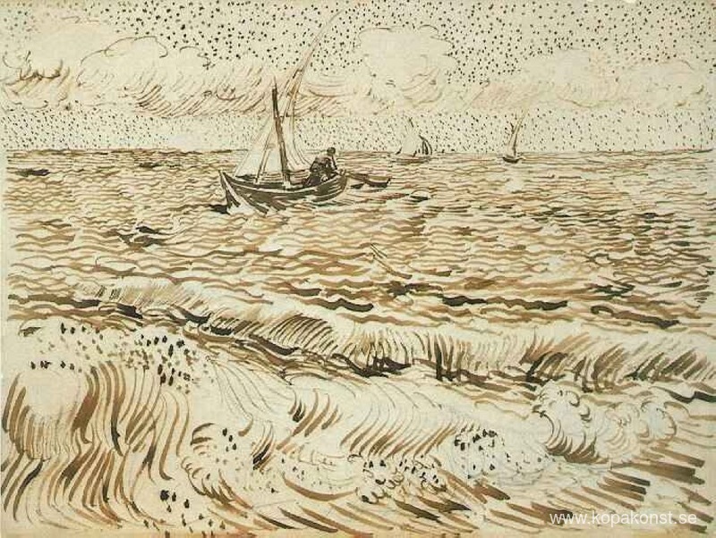 Vi erbjuder dig en hantverksmässig reproduktion på duk av det berömda konstverket 'En fiskebåt till havs' av Vincent van Gogh, från Reproduktionsmuseet.