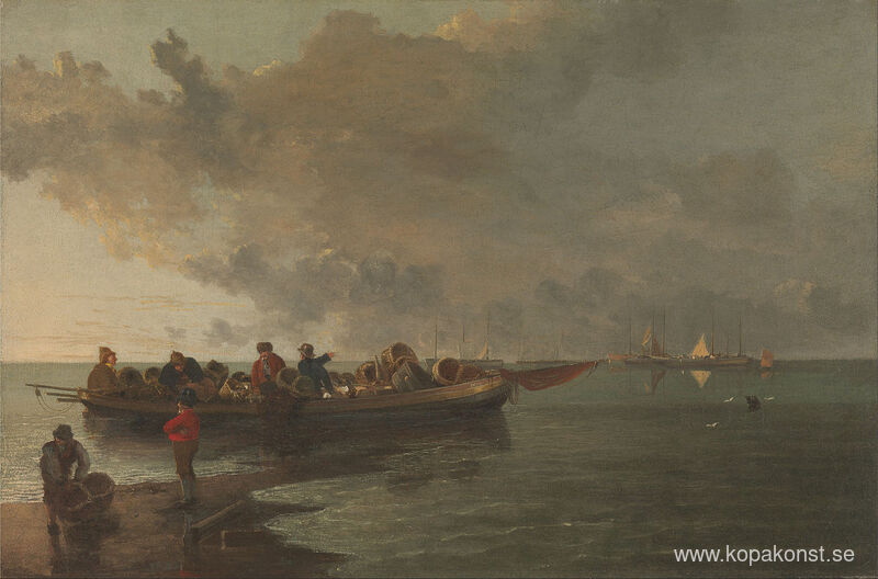 Vi erbjuder dig en hantverksmässig reproduktion på duk av det berömda konstverket 'En pråm med en skadad soldat' av John Crome, från Reproduktionsmuseet.