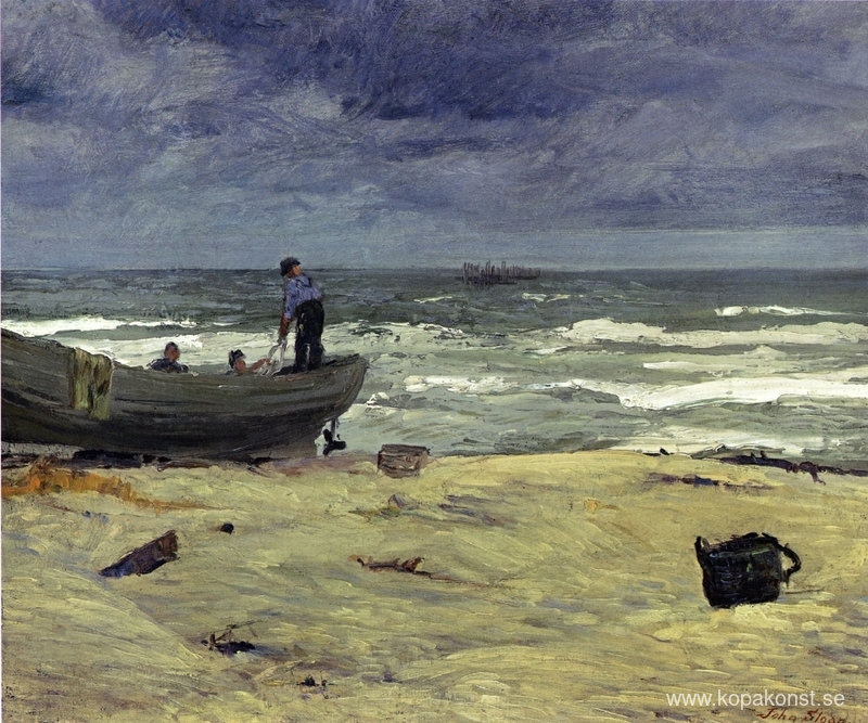 Vi erbjuder dig en hantverksmässig reproduktion på duk av det berömda konstverket 'Grey Day, Jersey Coast' av John French Sloan, från Reproduktionsmuseet.