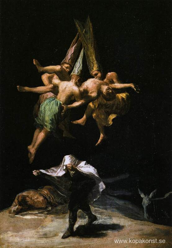 Vi erbjuder dig en hantverksmässig reproduktion på duk av det berömda konstverket 'Häxor i luften' av Francisco Goya, från Reproduktionsmuseet.