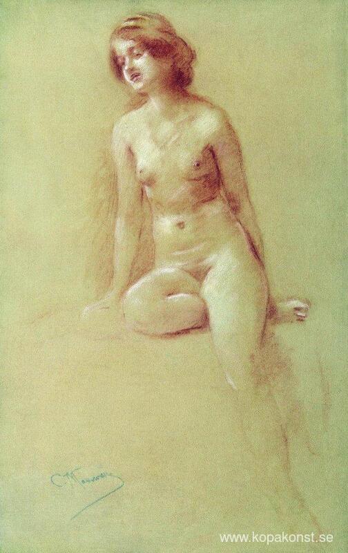 Vi erbjuder dig en hantverksmässig reproduktion på duk av det berömda konstverket 'Modell' av Konstantin Makovsky, från Reproduktionsmuseet.
