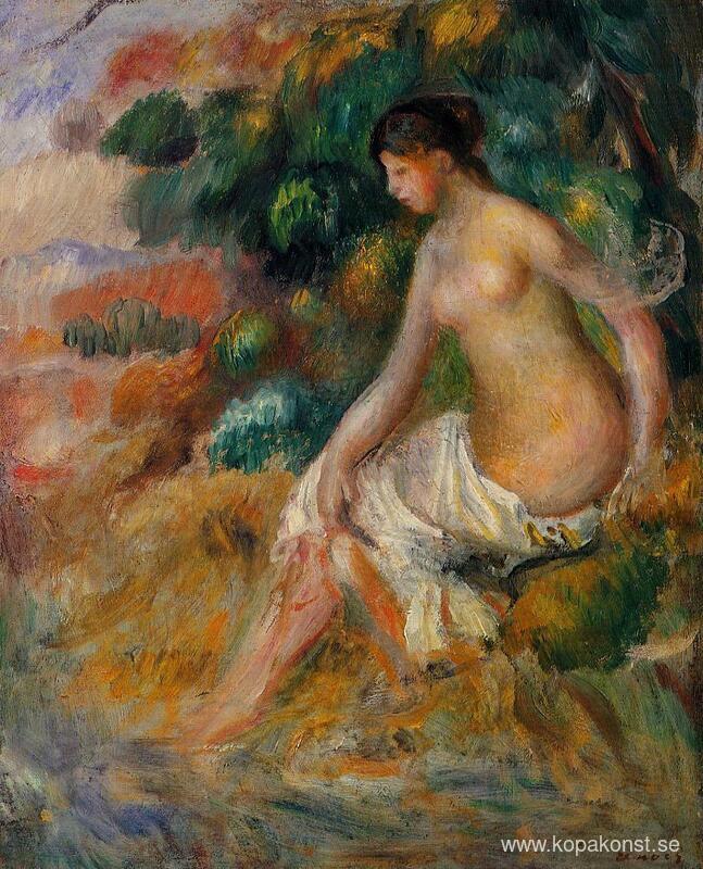 Vi erbjuder dig en hantverksmässig reproduktion på duk av det berömda konstverket 'Naken i grönskan' av Pierre-Auguste Renoir, från Reproduktionsmuseet.