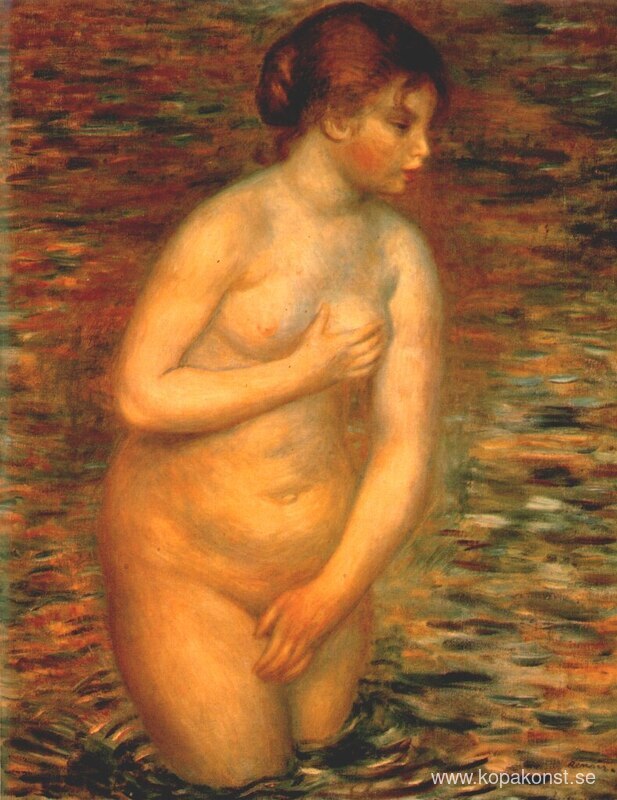 Vi erbjuder dig en hantverksmässig reproduktion på duk av det berömda konstverket 'naken i vattnet' av Pierre-Auguste Renoir, från Reproduktionsmuseet.