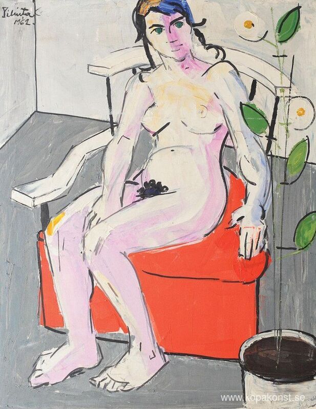 Vi erbjuder dig en hantverksmässig reproduktion på duk av det berömda konstverket 'Naken med blomma' av Constantin Piliuta, från Reproduktionsmuseet.