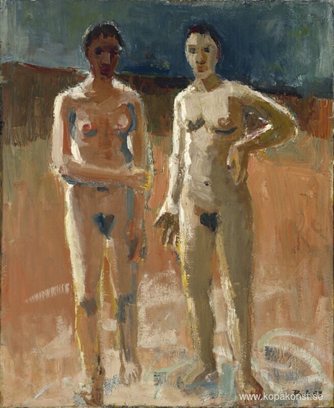 Vi erbjuder dig en hantverksmässig reproduktion på duk av det berömda konstverket 'Två kvinnor' av David Park, från Reproduktionsmuseet.