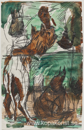 Vi erbjuder dig en hantverksmässig reproduktion på duk av det berömda konstverket 'Dog-Split' av Georg Baselitz, från Reproduktionsmuseet.