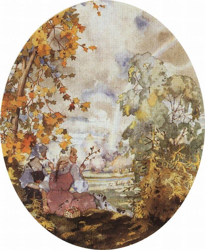 Vi erbjuder dig en hantverksmässig reproduktion på duk av det berömda konstverket 'Pastoral scen med två flickor' av Konstantin Somov, från Reproduktionsmuseet.
