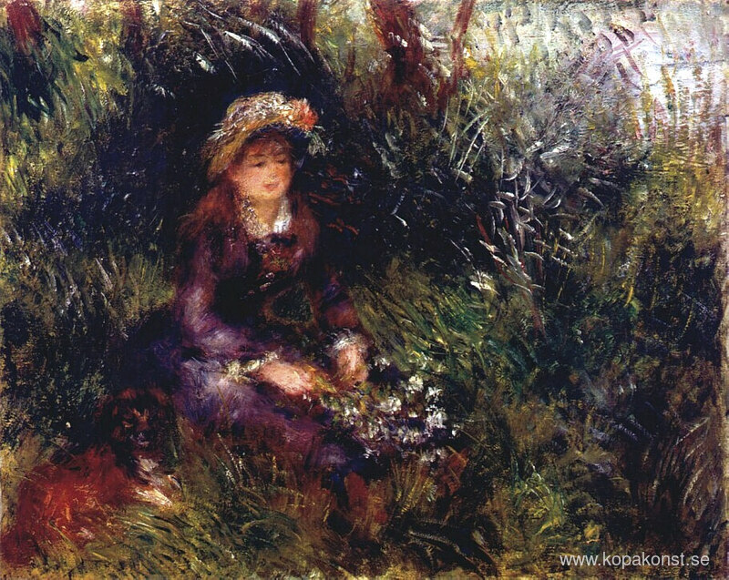 Vi erbjuder dig en hantverksmässig reproduktion på duk av det berömda konstverket 'Aline Charigot med en hund' av Pierre-Auguste Renoir, från Reproduktionsmuseet.