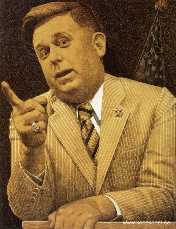 Vi erbjuder dig en hantverksmässig reproduktion på duk av det berömda konstverket 'Anhängare ' av Grant Wood, från Reproduktionsmuseet.