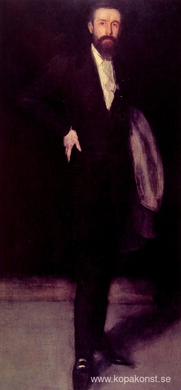 Vi erbjuder dig en hantverksmässig reproduktion på duk av det berömda konstverket 'Arrangemang i svart: Porträtt av F.R. Leyland' av James McNeill Whistler, från Reproduktionsmuseet.
