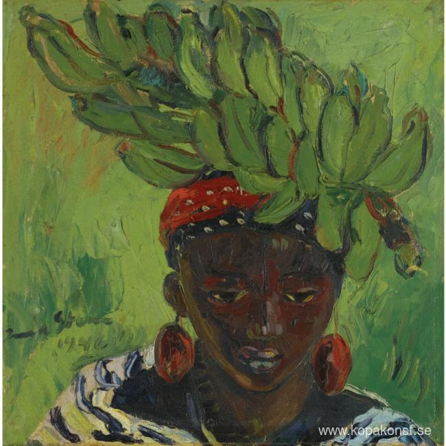 Vi erbjuder dig en hantverksmässig reproduktion på duk av det berömda konstverket 'Bananbärare' av Irma Stern, från Reproduktionsmuseet.