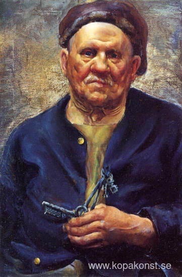 Vi erbjuder dig en hantverksmässig reproduktion på duk av det berömda konstverket 'Burgeister med nyckel' av Ivan Albright, från Reproduktionsmuseet.