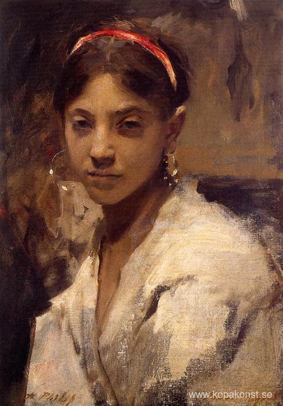 Vi erbjuder dig en hantverksmässig reproduktion på duk av det berömda konstverket 'Chef för en Capri Girl' av John Singer Sargent, från Reproduktionsmuseet.