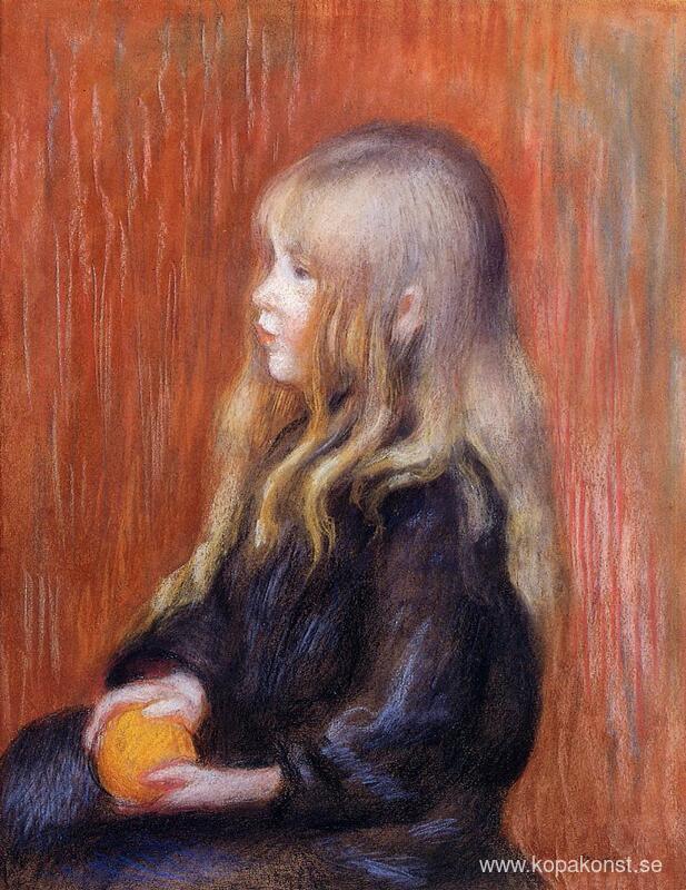 Vi erbjuder dig en hantverksmässig reproduktion på duk av det berömda konstverket 'Coco som håller en apelsin' av Pierre-Auguste Renoir, från Reproduktionsmuseet.