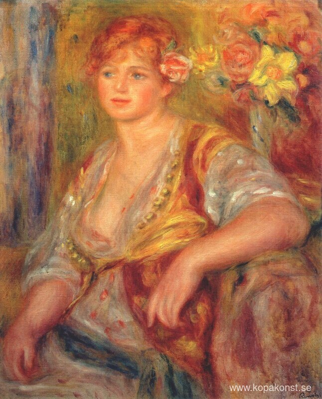Vi erbjuder dig en hantverksmässig reproduktion på duk av det berömda konstverket 'Dedee i spansk klänning' av Pierre-Auguste Renoir, från Reproduktionsmuseet.