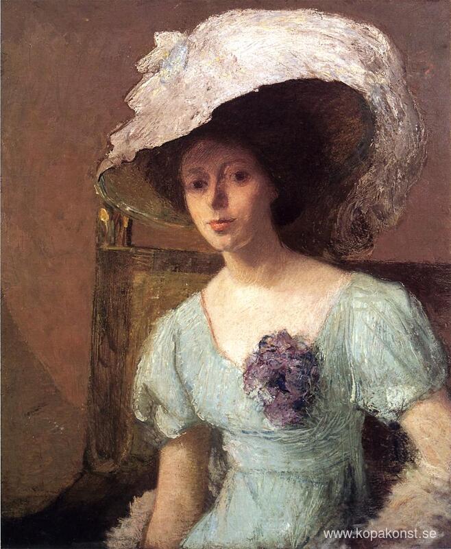 Vi erbjuder dig en hantverksmässig reproduktion på duk av det berömda konstverket 'Den blå klänningen' av Julian Alden Weir, från Reproduktionsmuseet.
