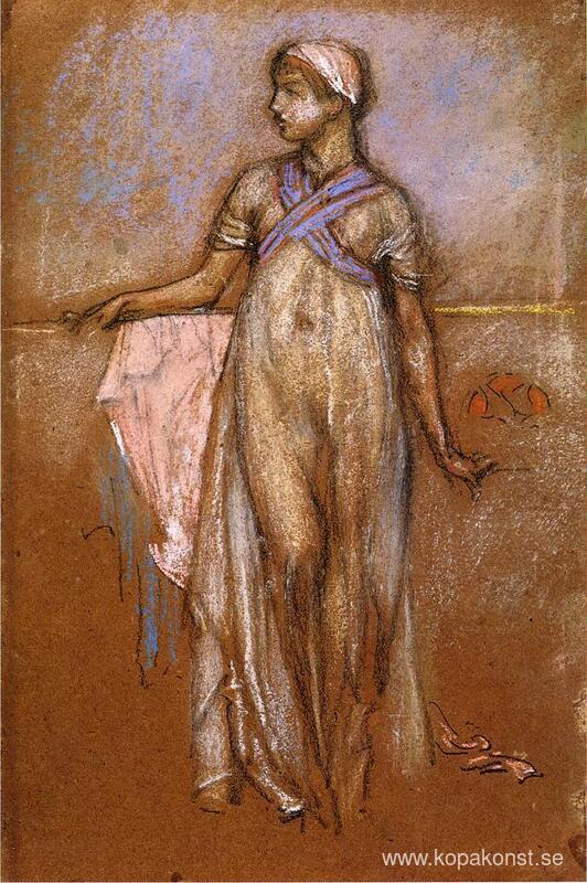 Vi erbjuder dig en hantverksmässig reproduktion på duk av det berömda konstverket 'Den grekiska slavtjejen (eller variationer i viol och ros)' av James McNeill Whistler, från Reproduktionsmuseet.