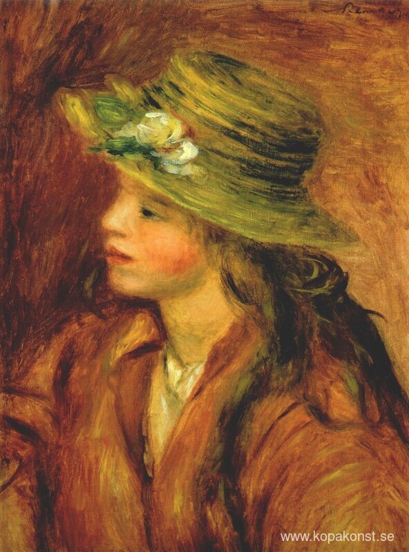 Vi erbjuder dig en hantverksmässig reproduktion på duk av det berömda konstverket 'Flicka med en stråhatt' av Pierre-Auguste Renoir, från Reproduktionsmuseet.