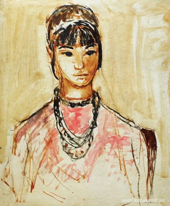 Vi erbjuder dig en hantverksmässig reproduktion på duk av det berömda konstverket 'Flicka med pärlor' av George Stefanescu-Ramnic , från Reproduktionsmuseet.