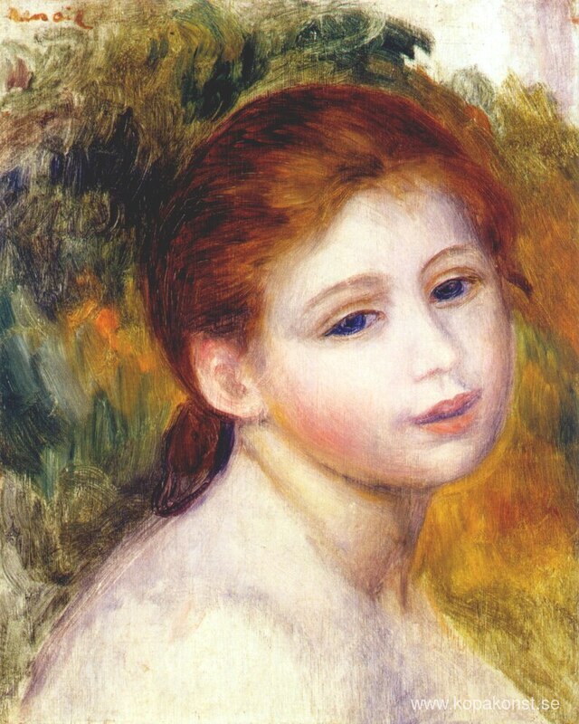 Vi erbjuder dig en hantverksmässig reproduktion på duk av det berömda konstverket 'Huvudet av en kvinna' av Pierre-Auguste Renoir, från Reproduktionsmuseet.