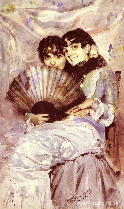 Vi erbjuder dig en hantverksmässig reproduktion på duk av det berömda konstverket 'Kusinerna' av Anders Zorn, från Reproduktionsmuseet.