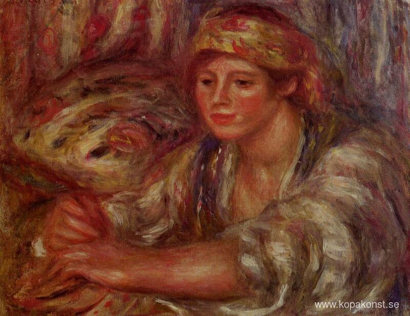 Vi erbjuder dig en hantverksmässig reproduktion på duk av det berömda konstverket 'Kvinna som spelar kort' av Pierre-Auguste Renoir, från Reproduktionsmuseet.
