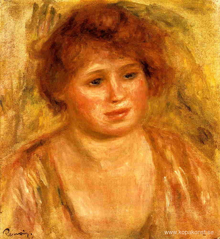 Vi erbjuder dig en hantverksmässig reproduktion på duk av det berömda konstverket 'Kvinnans huvud' av Pierre-Auguste Renoir, från Reproduktionsmuseet.