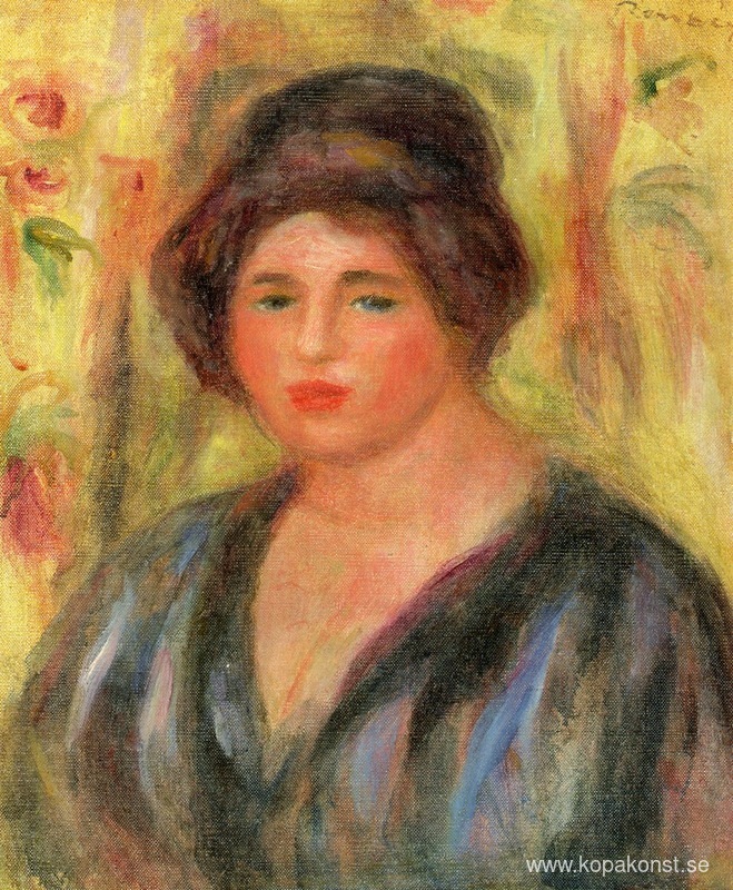 Vi erbjuder dig en hantverksmässig reproduktion på duk av det berömda konstverket 'Kvinnans huvud' av Pierre-Auguste Renoir, från Reproduktionsmuseet.