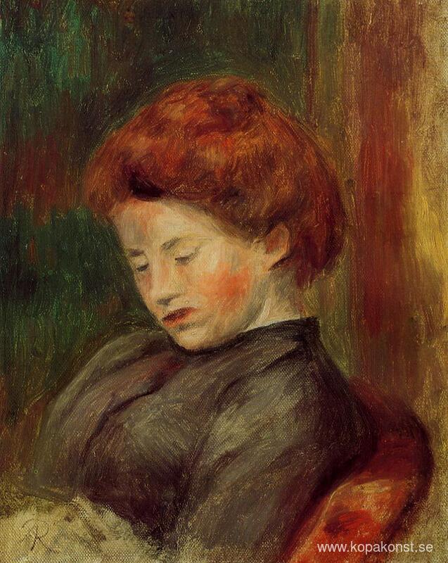 Vi erbjuder dig en hantverksmässig reproduktion på duk av det berömda konstverket 'Kvinnans huvud' av Pierre-Auguste Renoir, från Reproduktionsmuseet.