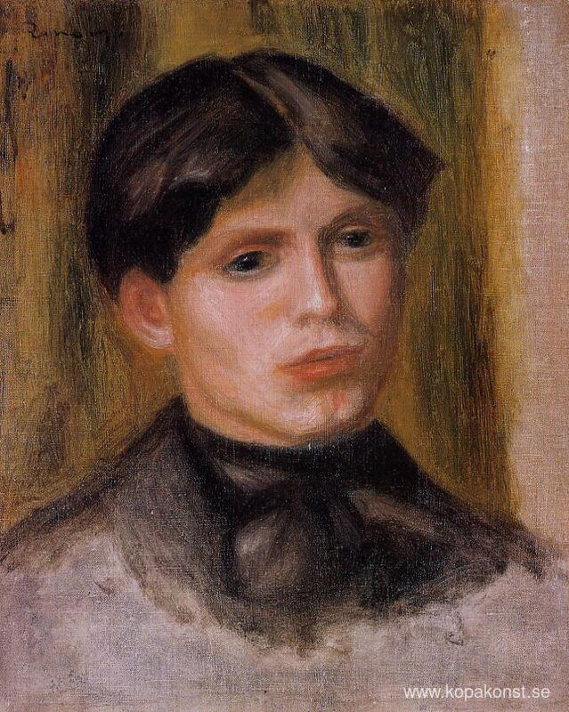 Vi erbjuder dig en hantverksmässig reproduktion på duk av det berömda konstverket 'Kvinnans huvud' av Pierre-Auguste Renoir, från Reproduktionsmuseet.