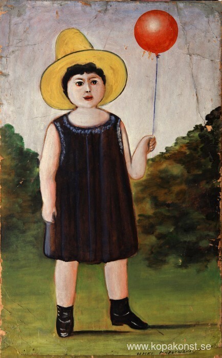 Vi erbjuder dig en hantverksmässig reproduktion på duk av det berömda konstverket 'Liten flicka i en blå klänning' av Niko Pirosmani, från Reproduktionsmuseet.