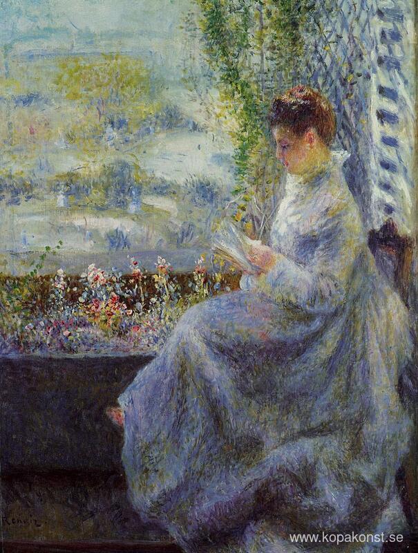 Vi erbjuder dig en hantverksmässig reproduktion på duk av det berömda konstverket 'Madame Chocquet Reading' av Pierre-Auguste Renoir, från Reproduktionsmuseet.