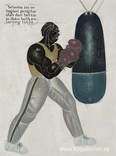 Vi erbjuder dig en hantverksmässig reproduktion på duk av det berömda konstverket 'Man från Bantul' av Nyoman Masriadi, från Reproduktionsmuseet.