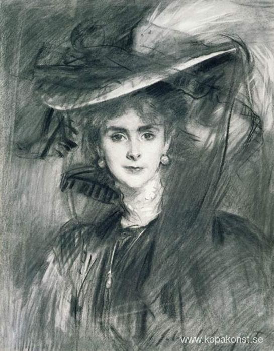 Vi erbjuder dig en hantverksmässig reproduktion på duk av det berömda konstverket 'Olga, friherrinna de Meyer' av John Singer Sargent, från Reproduktionsmuseet.