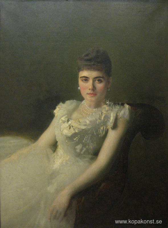 Vi erbjuder dig en hantverksmässig reproduktion på duk av det berömda konstverket 'Porträtt av Anna von Derviz' av Ivan Kramskoy, från Reproduktionsmuseet.