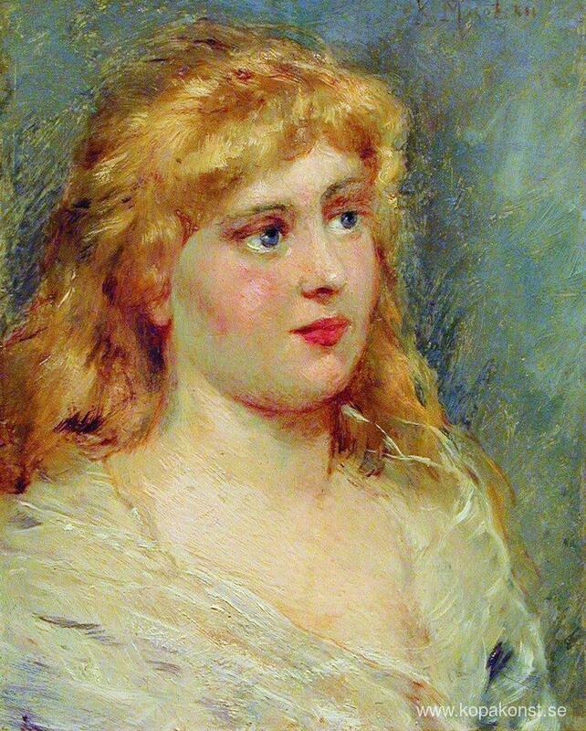 Vi erbjuder dig en hantverksmässig reproduktion på duk av det berömda konstverket 'Porträtt av blondin' av Konstantin Makovsky, från Reproduktionsmuseet.
