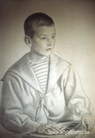 Vi erbjuder dig en hantverksmässig reproduktion på duk av det berömda konstverket 'Porträtt av Dmitri Dmitrievich Shostakovich som ett barn ' av Boris Kustodiev, från Reproduktionsmuseet.